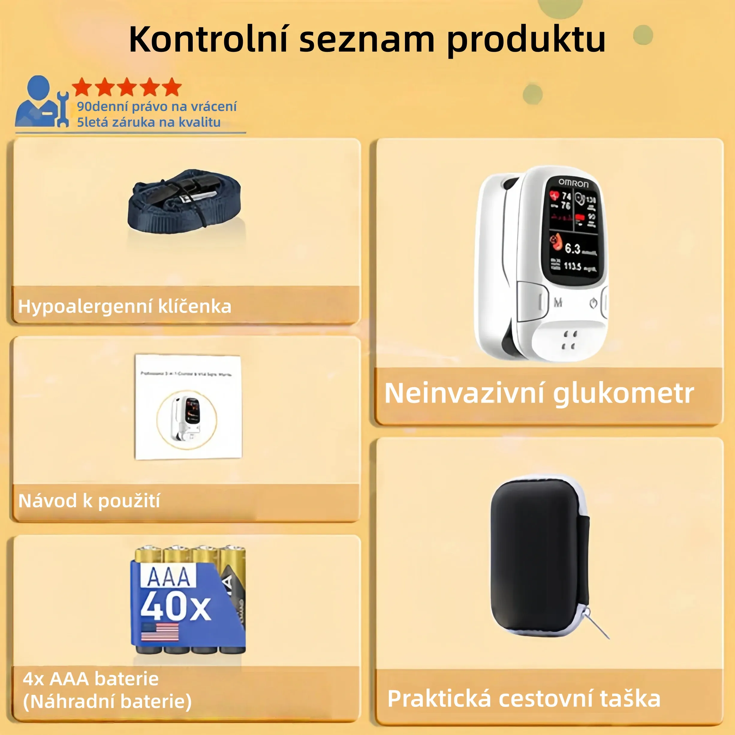 ✅ Skutečně neinvazivní měření: bez vpichu, bez krvácení - ideální pro seniory, novopečené matky, děti a osoby s citlivou pokožkou